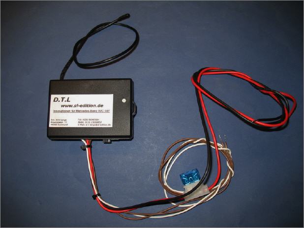 Hier ist die Zentraleinheit mit der Empfängerantenne zu sehen. Dieses Modul wird direkt an der Pumpe im Kofferraum montiert.